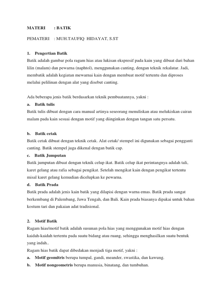 1 30 2021 Motif batik yang mudah digambar untuk anak SMP Batik adalah salah satu warisan dunia dan sudah di akui oleh UNESCO dan sekaligus menjadi ciri khas pakaian nasional Indonesia yang sudah tersohor ke mancanegara Para perajin batik tradisional yang ada di daerah daerah pun turut mengembangkan motif batik seperti dedaunan akar akar dan juga bunga